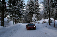 Well, there are three possibilities as to what this ski-bearing tastefully-trimmed Lotus Evora is doing in the Alps: 1) it's the new 007 Bond car, 2) it's a Bond-themed Lotus ad campaign, or 3) some dude (or hopefully super-fine Geneva model...call me!) with a ton of cash just really likes attention.